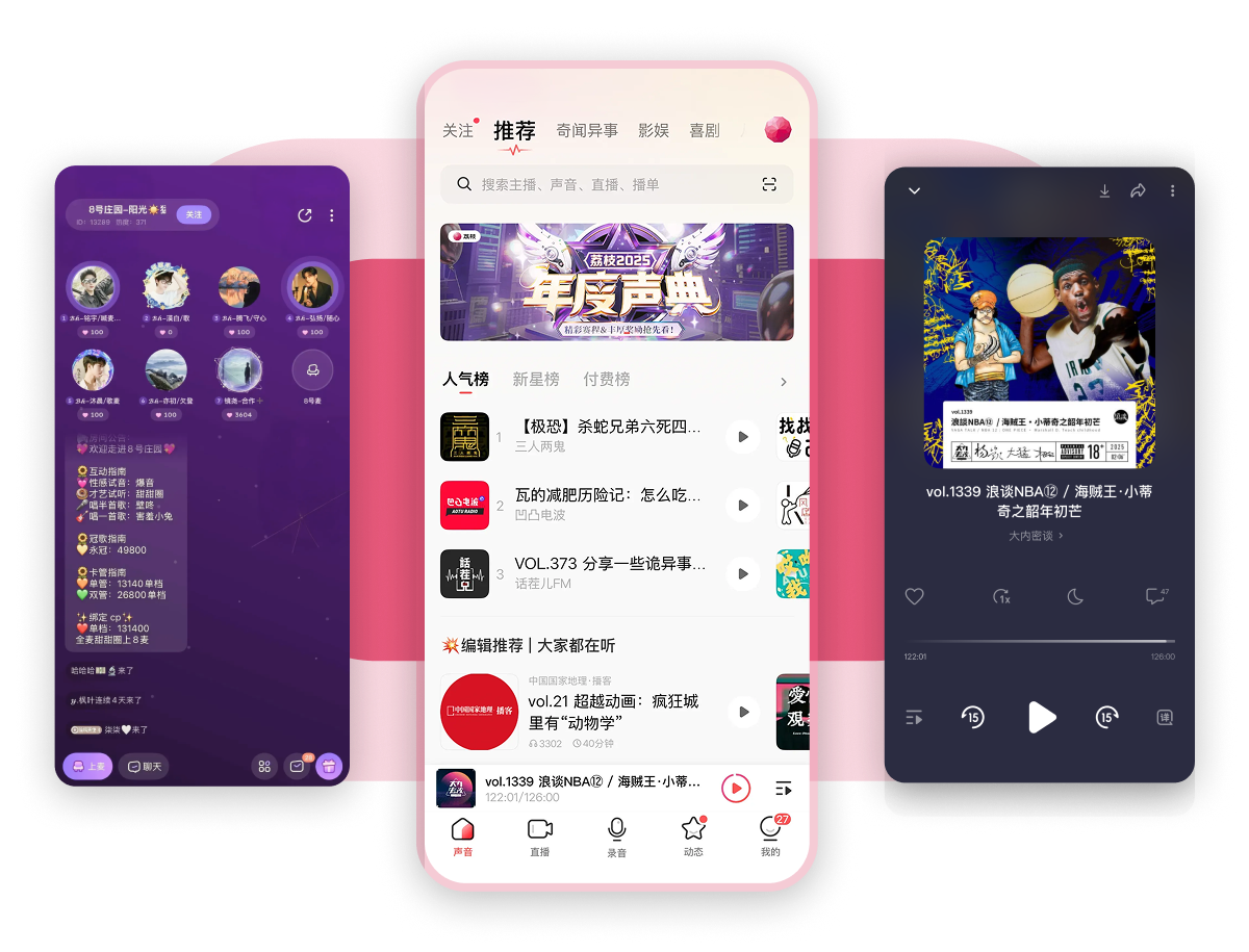 We provide a comprehensive suite of online audio products designed to meet diverse user needs. Our offerings include live audio streaming, multi-user voice interactions, podcasts, and more to support a wide range of use cases.